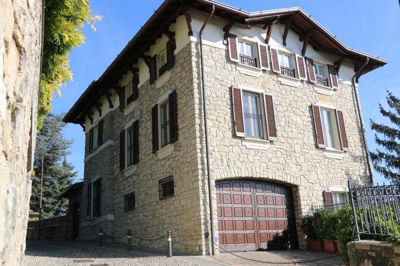 “La Citta Alta” adı verilen yukarı şehir, yeni şehre tepeden bakan bir konumda olup kentin en eski yerleşimi. Venedik Cumhuriyeti zamanında yaptırılan 6.200 metre uzunluktaki surlarla çevrili. Venedikliler tarafından yaptırıldığı için Venedik surları olarak anılıyor. San Agostino, San Lorenzo, San Giacomo ve Sant'Alessandro adlı dört kapısı var. İç Kale yani Cittadella ise 14. Yüzyılda Milano Dükleri Visconti'ler tarafından yaptırılmış.