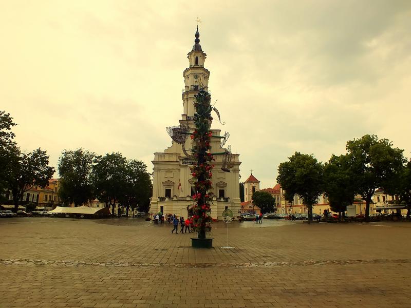 Sembol yapıları gördükten sonra tekrar Aleksoto Caddesi’nden meydana geri dönerek eski şehrin tam ortasında bulunan Belediye Sarayı Meydanı'na geliyoruz. Eski şehir belediye binasının etrafına öbeklenmiş. Görülen belediye binasına Litvanlar “Beyaz Kuğu” diyor. 16. yy’da bir pagan tapınağının üzerine 6 katlı pasta şeklinde yaptırılmış.