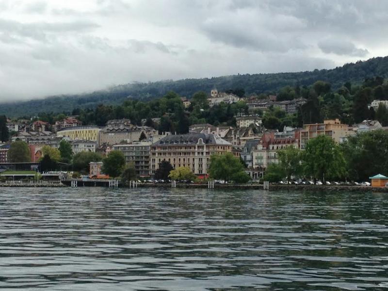 Bu yoldan devam edip Rue de L’Eglise’den geçip Place de L’Eglise’e (Kilise Meydanı) ulaştık. Bu şirin kilise, sokaktan geçip de meydana ulaştığınızda aniden karşınıza çıkıveriyor. Buradan da tekrar sahile inip Quai Charles Albert Besson adındaki daha geniş olan sahil yolu üzerinden yürüdük. Casino, tiyatro binası, town hall ve kütüphane de bu güzel cadde üzerinde… Yine bu caddede, göl manzarasına karşı oturup içki ya da kahvenizi yudumlayabileceğiniz ya da yemek yiyebileceğiniz birçok kafe ve restoran mevcut… Biz de böyle yaptık ve tekne saatimizi beklerken limanın tam karşısındaki bir kafede köpüklü şarap ve çeşitli meyve suları katılarak yapılan “kir”lerimizi yudumlamayı ihmal etmedik.