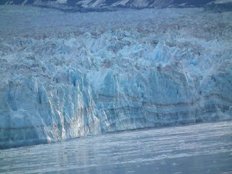 Son gün Hubbard Buzulu yakınından geçeceğimiz söylenmişti, sabah 7 de kaptanın anonsu ile uyandık, yataklardan fırlayıp yüzümüzü bile yıkamadan montlarımızı giyip güverteye koşturduk. Gemi buzullara gelmişti ve şansımıza soğuk ama pırıl pırıl ve güneşli bir sabahtı. Kaptan ilk kez buzullara bu kadar yaklaştığını söyledi ve 360 derece dönerek her noktadan herkese buzulları izleme olanağı sağladı. Müthiş bir manzaraydı, Arjantin Buzullar Patagonya’sındaki Perito Moreno buzulları kadar ihtişamlı olmasa da muhtesemdi, buzların arasındaki oyuklar derine indikçe maviden harika bir laciverte doğru bir renk almakta, elbette anlatmak, resim karelerinden gerçek renkleri görmek zor ancak yaşamak gerekli, resim çekmeye doymadım. Bir ara video çekerken arada bir oluşan kırılmalardan birine tesadüf edince bu harika görüntü kayıtlarımda yerini aldı.