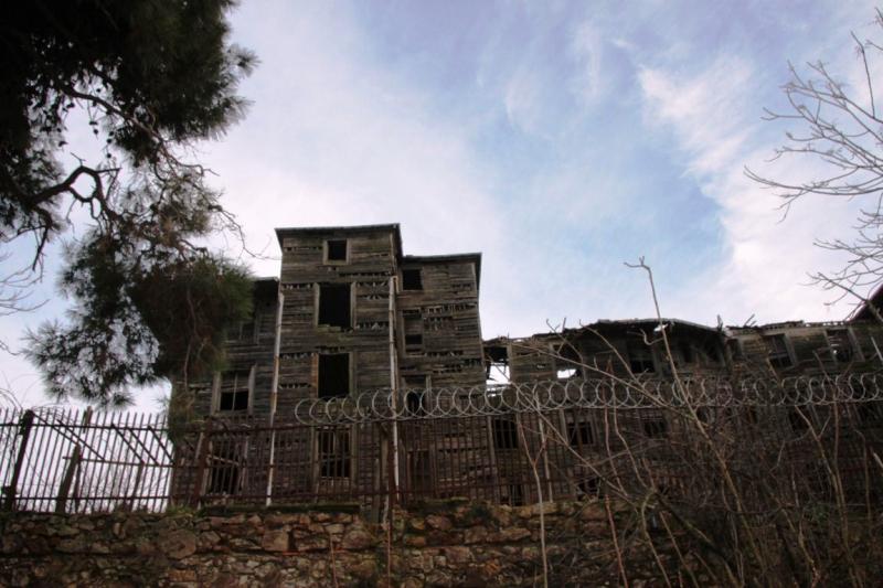 Bu ziyaretten sonra aynı çıkılan yoldan tekrar geriye döndük, ikinci ziyaret ettiğimiz önemli bir tarihi yapı da İsa Tepesi denilen, adanın ikinci yüksek tepesinde konumlanmış çok katlı ahşap Rum Yetimhanesi olarak adlandırılan bir yapıydı. Yemyeşil bir ormanın içerisinden denizi gören muhteşem ve özel yapı maalesef ki tellerle çevrilmiş, sadece dışarıdan görülebilmektedir. Çünkü gezilecek bir hali kalmamış, metruk bir halde ve kısa bir süre sonra da kendiliğinden yıkılacak gibi gözüküyor. Muhtemelen ziyaretçilerin güvenliği açısından bu şekilde bir uygulama yapılıyor diye düşünülebilir.