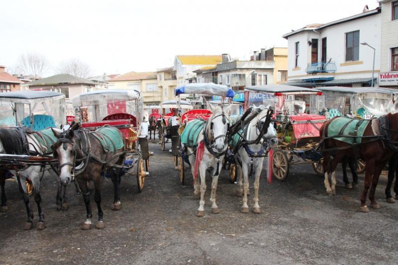 Adaya varıp otele giriş yapıp yaptıktan sonra turumuza başladık. İlkin otele yakın birkaç adım ötede bulunan fayton istasyonuna geldik. Fayton tercih etmemizin nedeni gezimize biraz nostalji ve romantizm katmaktı ve de giderken yorulmayalım diye düşünmüştük. Buradan yaklaşık 3,3 km kadar güney uçta bulunan Aya Yorgi Kilisesi’ne kadar faytonla seyahat ettik. Yol kenarlarında çeşit çeşit yazlık evler arasından geçerek kilisenin olduğu yamacın 1 km kadar altına geldik. Buradan sonra yeşil çam ağaçlarının içerisinden yukarıya doğru yürüyüş yaptıktan sonra muhteşem Aya Yorgi Kilisesi’ne ulaşmıştık. Yol boyunca da insanların bir ip veya bez parçası bağladıkları ağaç ve çalılar içerisinden geçtik, kimileri de makaralar ile yollara iplikler sermişler. Şimdi bu adanın en yüksek yerine inşa edilmiş bulunan kilise ve yollarda gördüğümüz, dilek ipleri, makaralar ve ağaçlara bağlanan bez parçaları ile ilgili bilgiler vereyim.