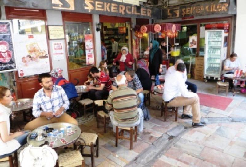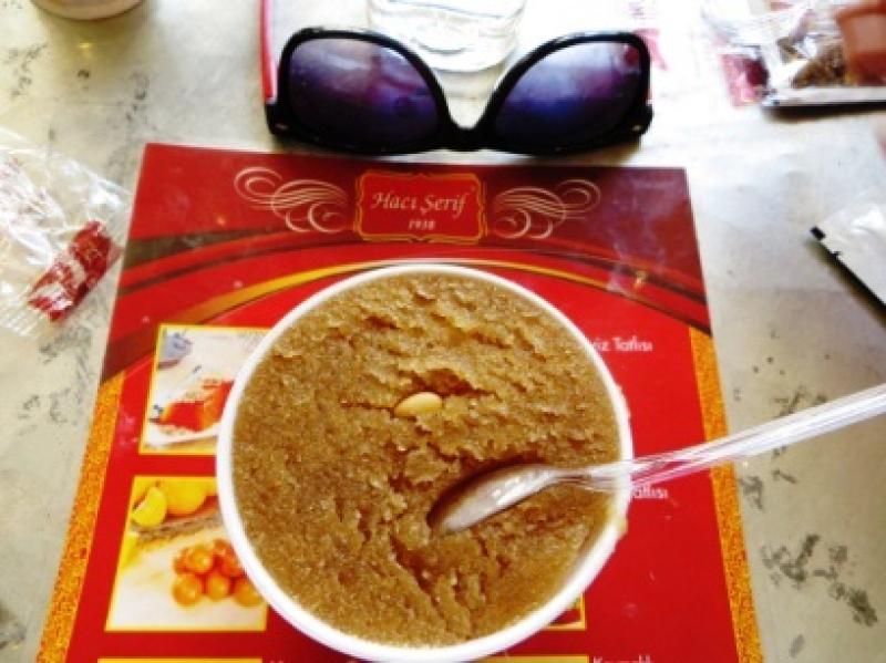 Şimdi bir tatlı molası verelim diyorum. Tabii isteyenler kahve veya soğuk şerbet de içebilirler. 1938 den beri hizmet veren Hacı Şerif müessesesine gidiyoruz. Sahibi Necmi Bey güler yüzlü ve kendini artık aşmış sevecenliliği ve ikramı ile bizleri karşılıyor.