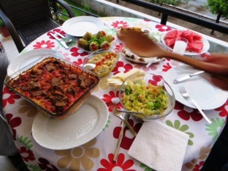 Akşam olduğuna göre artık bizi ağırlayan ve gezdiren Güzelgün ailesinin evine dönüyoruz. Bakalım bu akşam menüde hangi Denizli yemeği var. AAAA fırında pilavlı muhteşem bir tandır varmış. Neydi o pilavdaki lezzet, o etteki yumuşaklık. Neydi o rakının lezzeti! Hele Fatih Bey’in muhabbeti! Ellerinize sağlık Hülya Hanım. Teşekkür ederiz.