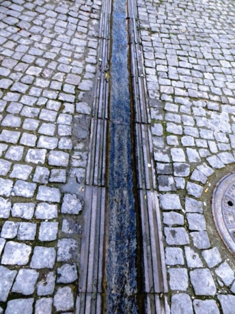 Buraya giderken yürüdüğümüz sokakları araç trafiğine kapatmışlar ve yolun ortasında eskiden olduğu gibi sular akıyor. Özel oluklarını ve su geçişlerini iyi tasarlamışlar. Hoş bir görüntü ve serinlik veriyor. Şırıl şırıl tertemiz sular sokaklarda akıyor.