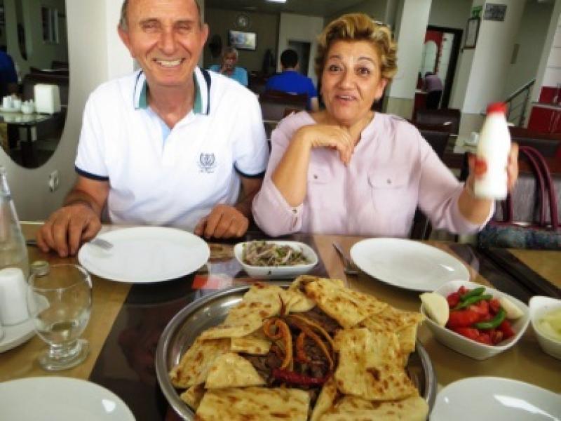 Kahvelerimizi içtikten sonra bugün eğer aceleniz de yoksa dostlarınızın yanında kalıyor ve onlarla birlikte geziyorsanız, sakın ha diyeyim, onların öğle vakti Denizli Kebabı tekliflerini geri çevirmeyin. Bu kebap bildiğiniz tandıra benziyor ama koyunun kaburga ve kollarının büyük şişlere saplanması sonucu odun fırınında pişiriliyor. Lezzeti öğle yemeğinde taze taze daha iyi anlaşılıyor. Zaten akşam vaktine de pek kalmıyor.
