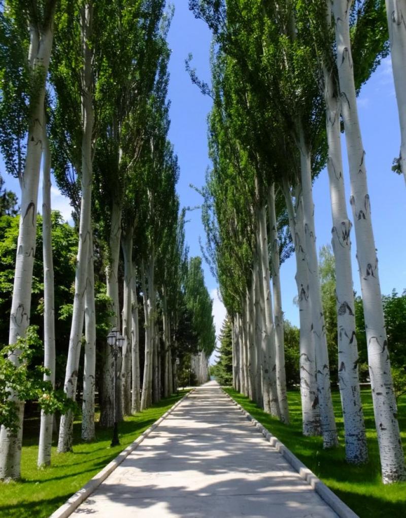 Çolpan Ata’nın merkezinde büyük bir park, parkın az batısında ise Kırgızistan Cumhurbaşkanı’nın yazlık sarayı var. Saray kelimesi sizi korkutmasın, çünkü görkemli ağaçlarla kaplı büyük bahçenin sadece küçük bir kısmı resmi konuta ait; kalan büyük bölümünü ise gönlünüzce gezebiliyorsunuz. Bu bölge vakti zamanında Boris Yeltsin’in de en favori mekanlarındanmış.