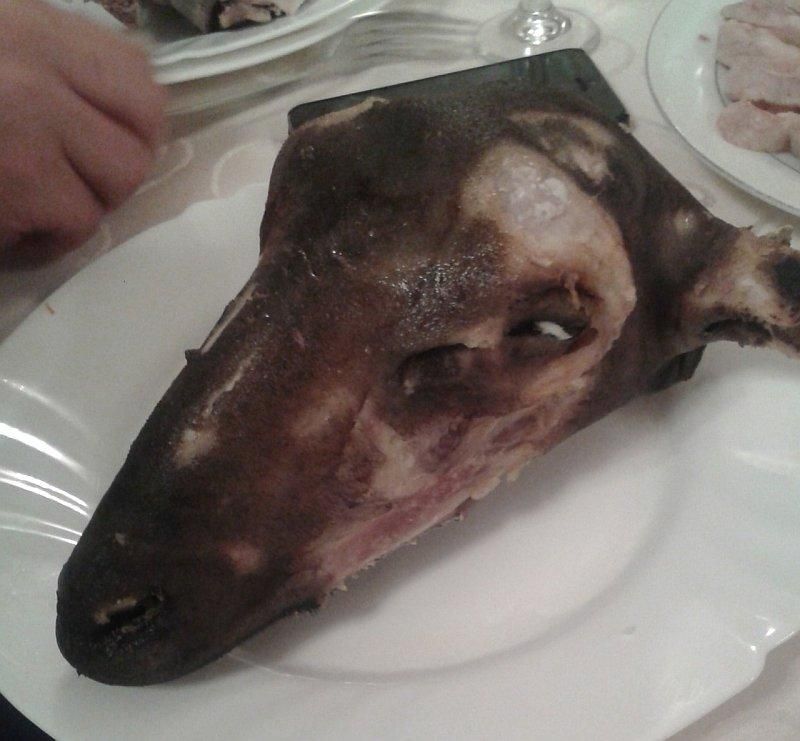 Başımıza koyun başı gelecek! Koyun başı, önemli konuklar için hazırlanan törensel bir yemekmiş. Yekpare pişirilen koyun başı, sofranın saygın kişisine sunulur, paylaştırması istenirmiş. Sofradaki Orta Asyalı olmayan tek kişi olduğumdan (aslında saygın da değilim ama) muhabbet olsun diye koyun başını önüme koyuyorlar. Rica minnet koyun başı paylaştırmayı başka bir elemana havale edip mümkünse yememeyi tercih ediyorum, ancak koyun başı şerefine peş peşe kalkan votka kadehlerine iştirak ediyorum.