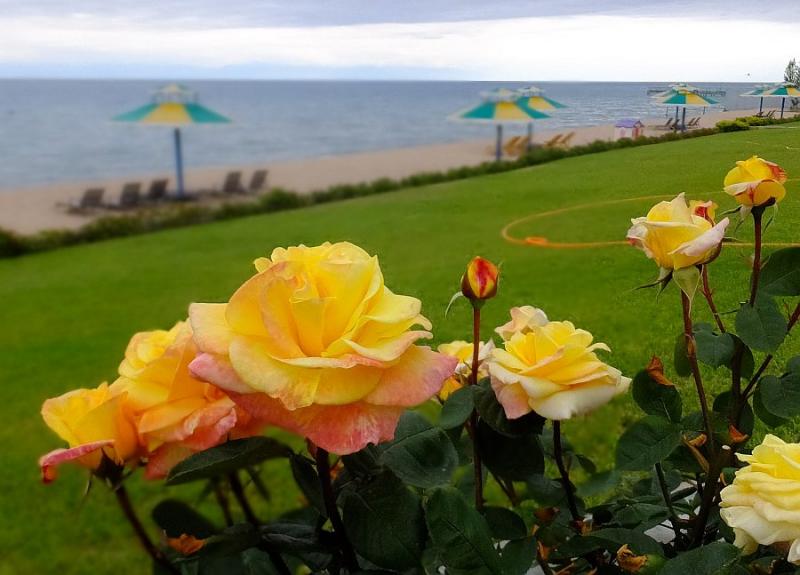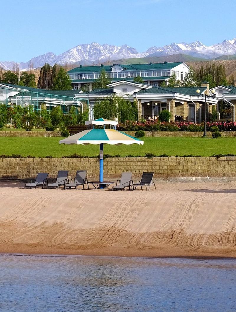 Bahçe içinde rastlayacağınız köhnemiş konutlar eskiden kamu çalışanları için misafirhane niteliğinde imiş; şimdi ise isteyenin konaklayabileceği, halka açık oteller... Dev ağaçların arasından yolunuzu bulup plaja ulaşabilirseniz hayretler içinde kalıyorsunuz. Yazının en başında da belirttiğim gibi, Orta Asya’nın en ortasında bu kadar mavi ve berrak bir su, bu derece incecik, yumuşacık bir kumsal bulmak sürprizlerin en büyüğü.