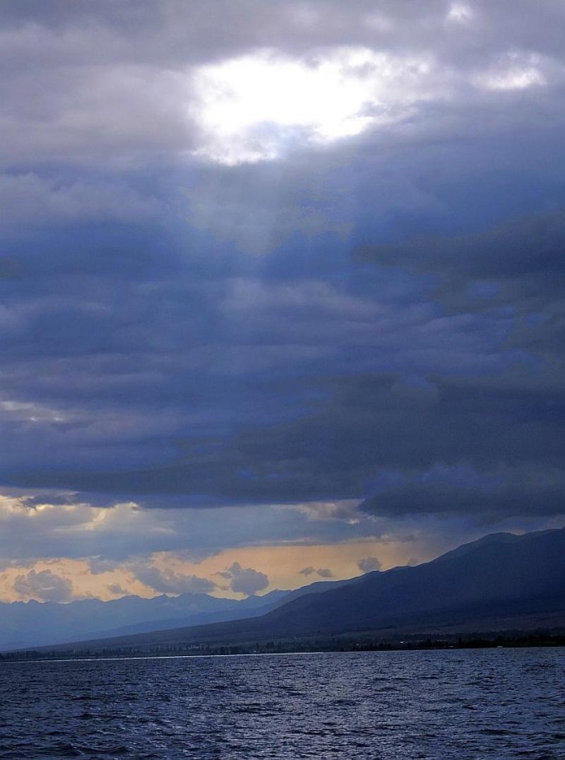 Issık Göl, tam da Cengiz Aytmatov'un betimlediği gibi, fırtınayı karşılamak üzere...