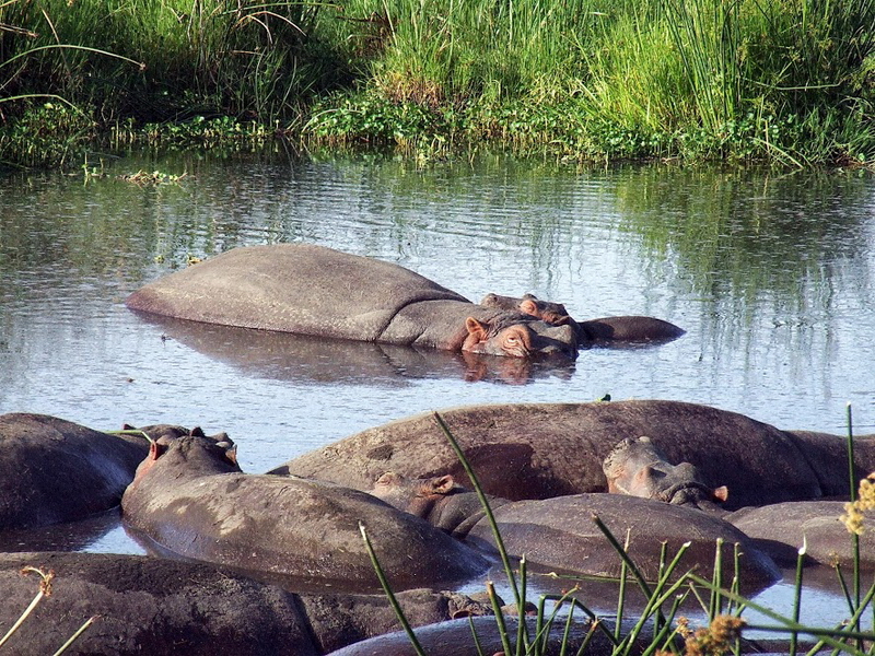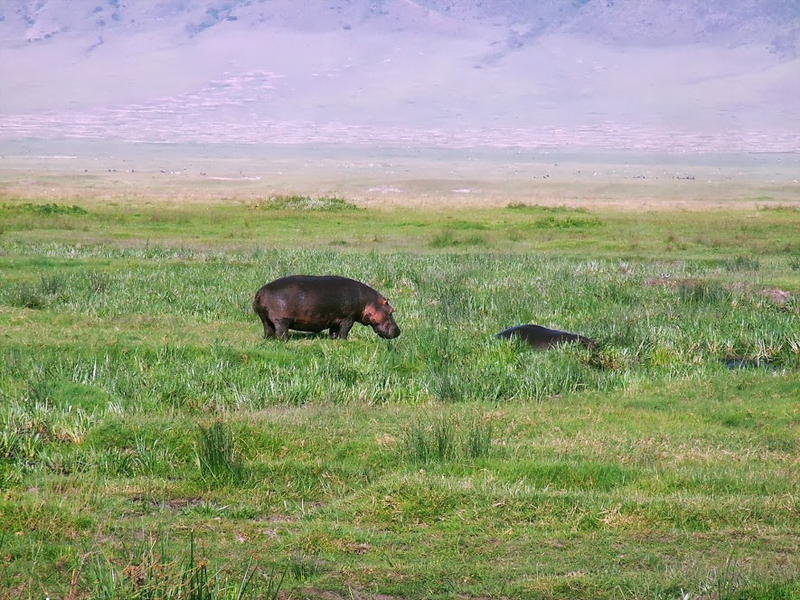 Hemen yakındaki bataklıklarda su aygırları, havuzlarda filler ve siyah gergedanlar kraterin büyükleri olarak önde geliyorlar.