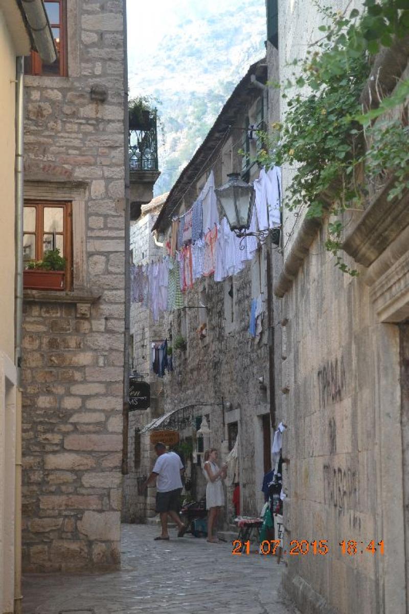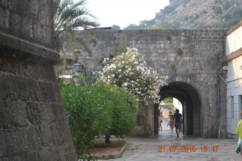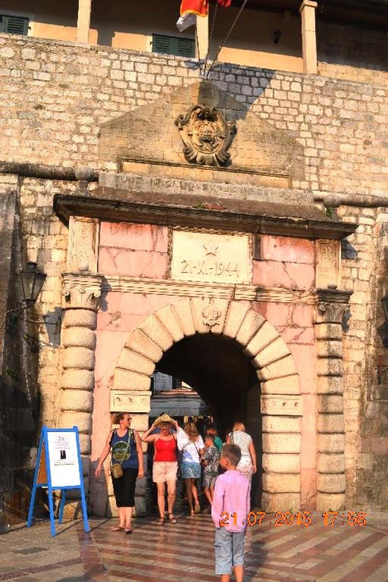 Stari Grad, yani Eski Şehrin 16. yüzyıldan kalma kalın duvarları arasında Sea Gate (Batıdaki Deniz Kapısı) - River Gate (Kuzeyde Nehir Kapısı) ve Gurdic Gate (Güney Kapısı) olmak üzere 3 kapısı var. Biz marinanın tam karşısındaki ana kapıdan, Deniz Kapısından giriyoruz tarihi şehre. Kemerli kapının hemen üstündeki mermer bir çerçevede kurtuluş tarihi olan 21-XI-1944 ve üzerinde de sosyalizmin simgesi bir yıldız var. Kapının üst kısmında ise ilginç ve dikkat çekici bir yazıyı kaçırmayın, 2nci Dünya Savaşında Kotor’un geri alınmasından sonra Tito tarafından kapı üzerine yazdırıldığı söylenen “Başkalarına ait olanı istemeyiz ama bizim olanı da teslim etmeyiz”anlamındaki "Tude Necemo Svoje Ne Damo".