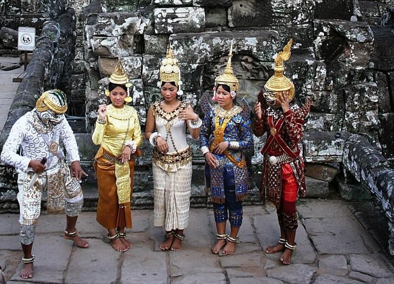 Khmer dans şovunda, Kamboçyalı kızlar özel kostümleri içerisinde Apsara dansından örnekler veriyorlar. Kamboçya’da tasvirleriyle çok sık karşılaştığımız Apsara, Hindu ve Budist mitolojilerinde bulutlarda ve suda yaşayan dişi perilere verilen isim. Bu doğaüstü varlıklar gençler, çok güzeller, zarifler ve de dans sanatında mükemmeller.