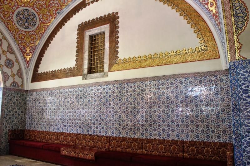 Kulenin hemen altında bulunan ve devlete ait konuların konuşulup kararların alındığı yer olan Divan-ı Hümayun. Divan odasının tam kapının karşısına Sadrazam gelecek şekilde dizilerek otururlarmış. İlk başlarda bu toplantılara katılan padişahlar, zaman içinde sadrazamın oturduğu yerin üzerindeki altın yaldızlı kafesin arkasında oturmayı ve böylece toplantı boyunca vezirleri dinlemeyi tercih eder olmuşlar. İşin ilginç tarafı kafesin önünde perde olurmuş ve vezirler padişahın perdenin arkasında olup olmadığını bilmediğinden sürekli dikkatli olmak zorundaymış.