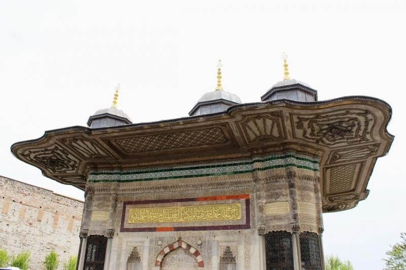 Ana kapıdan adım atmadan hemen önce Sultan 3. Ahmed Çeşmesi'ni göreceksiniz. Sanatı ve sanatçıyı koruyan, kendisi de şair, hattat ve müzisyen olan 3. Ahmed Lale devri ile özdeşleşmiş bir sultandır. Lale Devri eserlerinin çoğu yangınlar ve isyanlarda yok olurken günümüze kalmış ender eserlerden biridir bu çeşme. Çeşmenin Ayasofya'ya bakan yüzündeki kitabe de bizzat padişahın elinden çıkmış: "aç besmele ile, iç suyu, Han Ahmed'e eyle dua" (alıntı: Saffet Emre Tonguç)