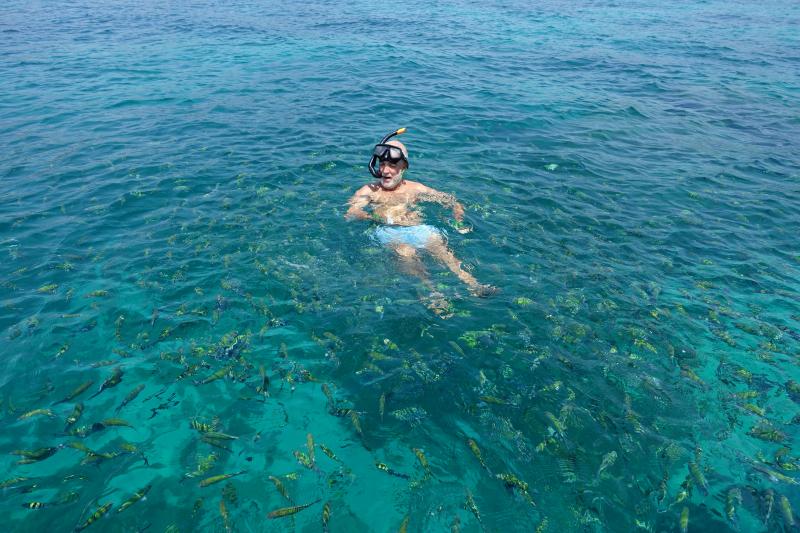 Işığın büyüsü bozulmaya başlıyor güneş yükseldikçe, inerken bile terliyor ve sırılsıklam dönüyorum minik kulübeme. Yine bambuların gölgesinde yaptığımız sıkı bir kahvaltının ardından, akşam tur aldığımız standın önüne geliyoruz. Kadın, diğer katılımcılarla birlikte bizi Ton Sai’de dizilmiş onlarca tekneden birine götürüp kapkara bir kürdana benzeyen kaptana teslim ediyor. Dayanamayıp şnorkelimi kuşanarak atlıyorum denize. Bir anda etrafımı Sergean Major balıkları sarıyor. Öyle alışmış ki balıklar, her kıpırtının kendilerine yiyecek vereceklerini biliyorlar, gezi teknelerinden kendilerine atılan yiyeceklerden dolayı.