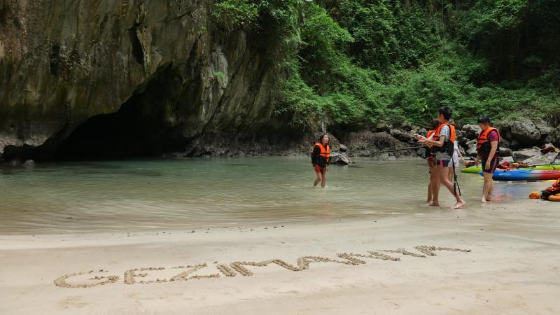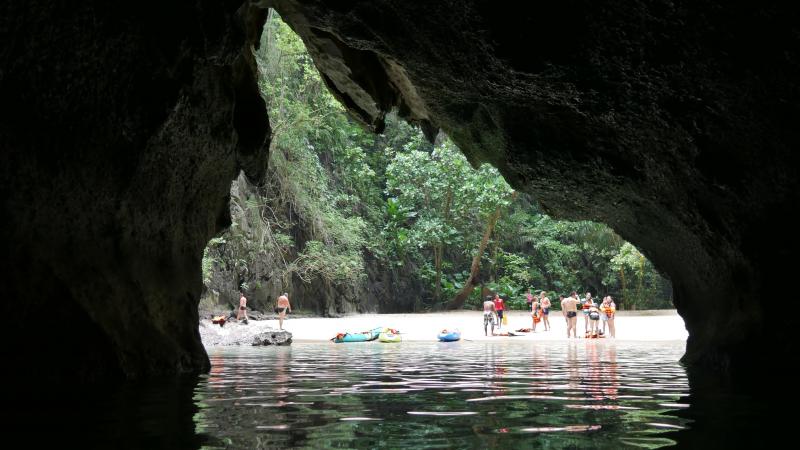 15 dakikalık tekne yolculuğu ardından Koh Muk’a ulaşılıyor. Tay dilinde Koh “ada” demek; yani Koh Muk, Muk Adası anlamına geliyor. Bu adanın en büyük özelliği gizli bir lagüne ev sahipliği yapması. Nasıl mı? Önce adaya ulaşıyorsunuz. Saatin öğleden önce 12 olduğundan emin oluyorsunuz. Çünkü 12 civarı med-cezir nedeniyle tünelden girip su yükselirse çıkamayabilirsiniz. Bu durumda da geceyi sular geri çekilene kadar lagünde geçirmek durumunda kalırsınız. Mağaranın başına geliyorsunuz ve önde rehber 80 metrelik mağaranın içinde yüzmeye başlıyorsunuz. Sonunda çıktığınız yer ise cennet olmalı. Suyun rengi zümrüt rengi olduğundan buraya Emerald Cave, yani zümrüt mağara demişler. Tay dilindeki adı ise Tham Morakot.
