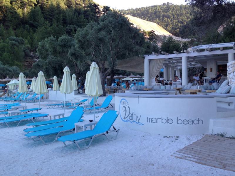 Ama biraz daha devam ederseniz, Porto Vathy’ye ulaşıyorsunuz. Burası çok şık bir tesis. Özellikle akşam üstü saatlerinde beach partiler oluyor.