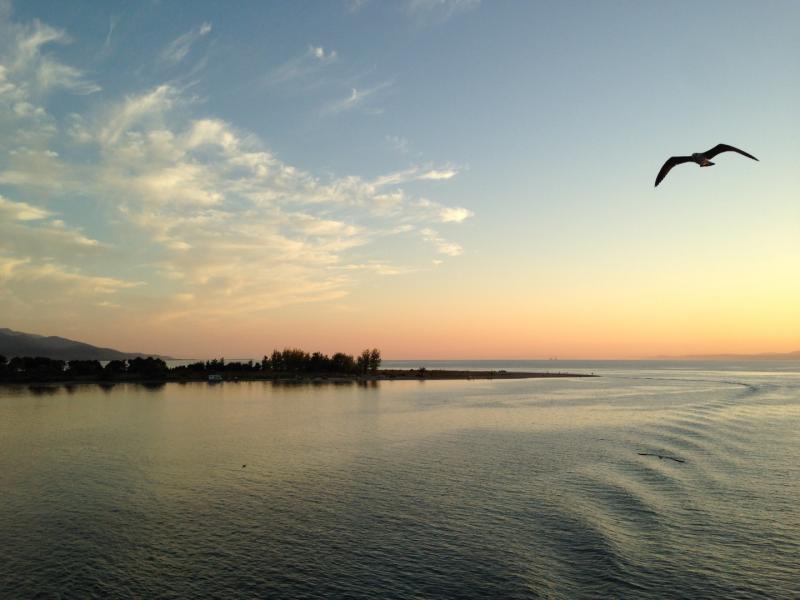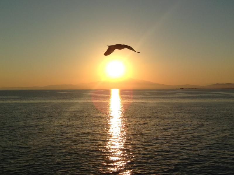 Ertesi sabah erkenden feribota binmek için Keramoti'ye doğru çıktık. Dedeağaç ile Keramoti arası yaklaşık 155 kilometre yani 1,5 saat. Feribota önceden rezervasyon yapılmıyor. O nedenle kuyruk olur diye biraz endişe ettik ama şansımıza feribotta neredeyse hiç sıra yoktu. Hemen Feribot’a bindik. Keramoti’den Thassos’a feribotla ulaşım ise yaklaşık 45 dakika sürüyor. Ve yolculuk o kadar keyifli ki nasıl geçtiğini anlamıyorsunuz. Yolculuk boyunca size martılar eşlik ediyor.