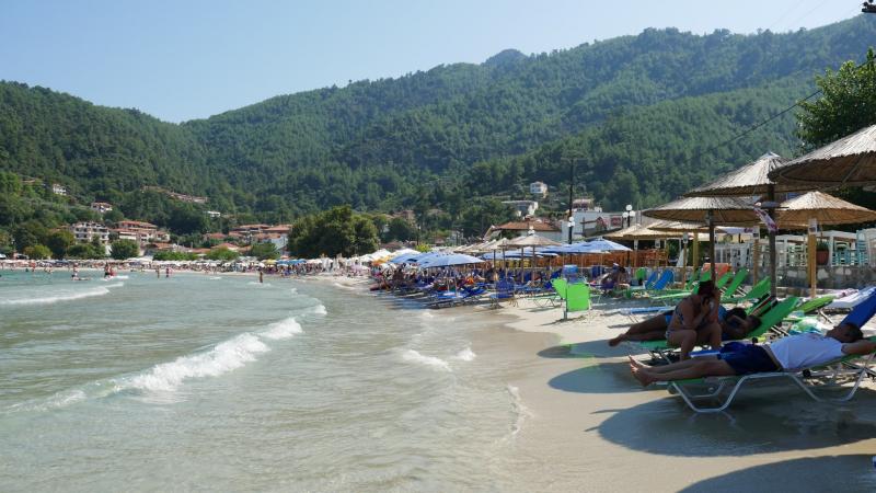 Skala Potamia’dan 20- 25 dakikalık yolculuk sonrası ulaştığımız Aliki Beach, Thassos’ta en sevdiğimiz beachler arasında ikinci sıraya yerleşti. İlkini sona saklıyorum. Arabayı yolun kenarına çekip, derin bir koya doğru merdivenlerden iniyoruz. Buranın kumsalı çok dar. Yani kalabalıkta çok iç içe oturabilirsiniz insanlarla ama denizi muhteşem. Yeşillikler içindeki koyun çevresinde bir iki restoran var. Eğer burada yemek yerseniz şezlong ve şemsiyeden ücretsiz yararlanabiliyorsunuz. Biz çok kalmayacağımız için şezlong ve şemsiye de almadık. Denize girdik keyfini çıkarttık kurumak için koy boyunca yürüyüş yaptık. Uzun süreli kalacaksanız ve sakin gece hayatından uzak bir seçenek arıyorsanız Aliki doğru bir nokta.