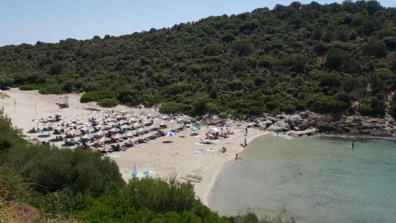 Yemek sonrası hemen denize girmek olmaz diye yakınlardaki Panagia köyüne gittik. Çok çok enteresan bir köy değil. Meydanı ufacık ve de küçük bir kilise var. Aslında oğlak çevirmesi meşhurmuş ama tıka basa doyduğumuz için çok oyalanmadan otelimize 15-20 dakika mesafedeki Paradise Beach’e gittik.