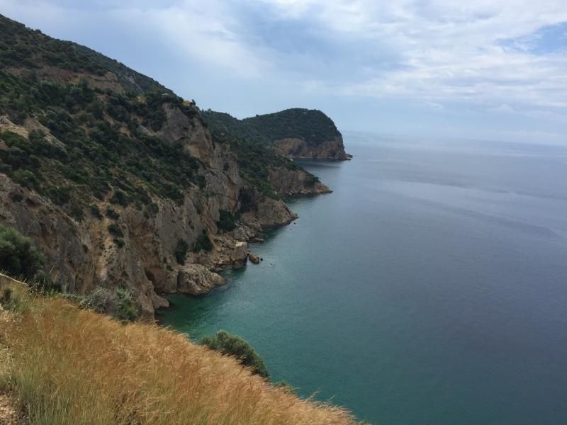 Çok kısa süren bir yoldan sonra bu sefer Giola’ya gittik. Giola dünyadaki birkaç doğal kaya gölünden biri. Deniz kenarındaki bu göl aksiyonlu yüzmeyi seven kişilere mutlaka tavsiye ediyoruz. Ancak araba ile ulaşım olmadığı için yol kenarına çekip 10-15 dk çalıların arasından yürümeniz gerekiyor. Ayrıca araçla ulaşım olmayan bir yer olması sebebi ile yakınlarında yemek yiyecek yer bulunmadığından Giola’ya kadar gidip yüzmeden şezlonglarda soğuk bir şeyler içebileceğimiz Aliki’ye döndük.