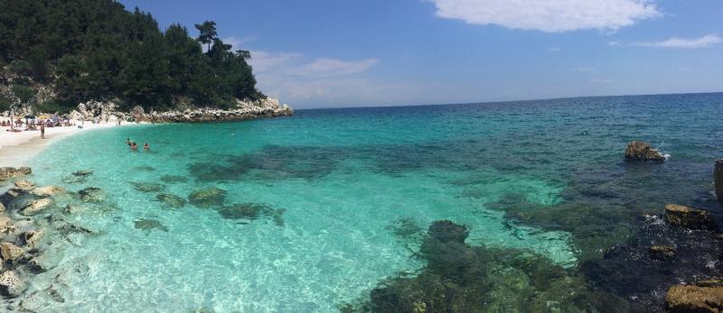 Yaklaşık 25 dakika sonra Aliki’deydik. Yol kenarına aracımızı park edip plaja indik. Çok güzel, sessiz, sakin ve mükemmel bir koy. Bir kaç tane mekan var herhangi birine girebilirsiniz veya biraz daha ileri gidip taşlık bir bölgeden denize girebilirsiniz hiçbir şey ödemeden. Bir şey yiyip içmeniz durumunda şezlonglardan para almıyorlar. Espressoya 3€ veriyoruz. Deniz gerçekten mükemmel ve çok dingin. Ortamda huzuru kaçıracak hiçbir şey yok :) Denizde balıklarla birlikte yüzdük resmen :)