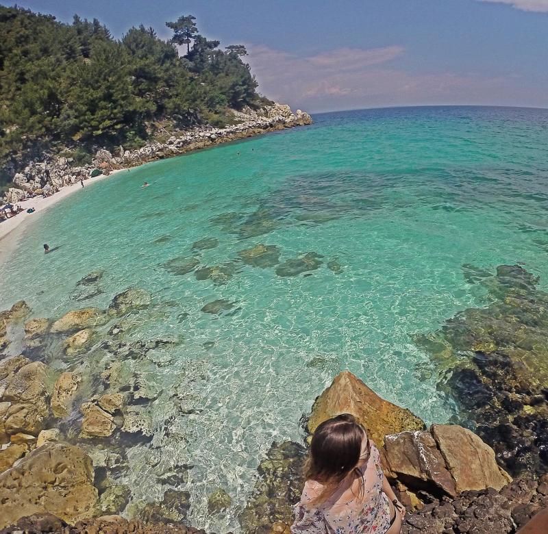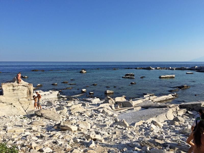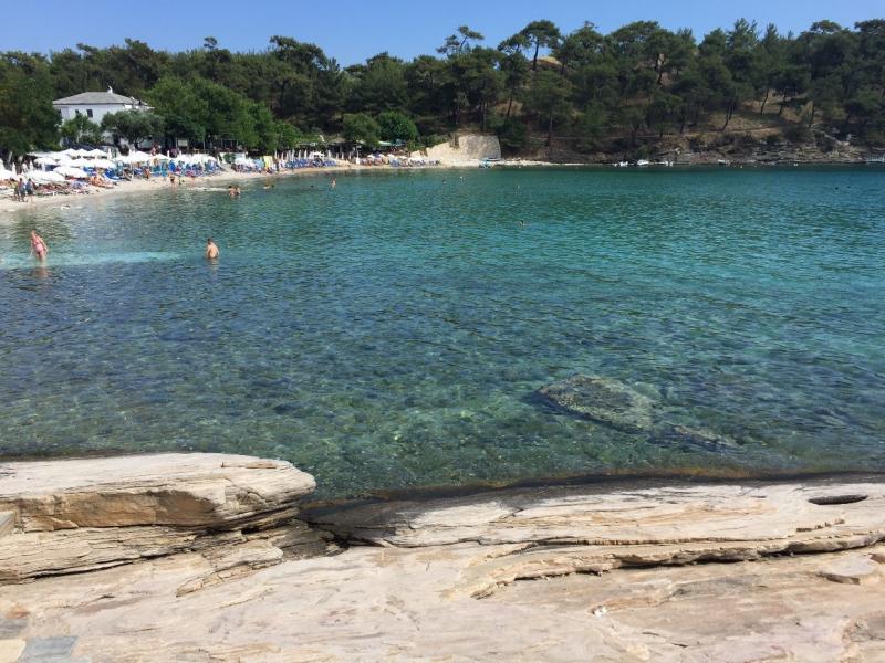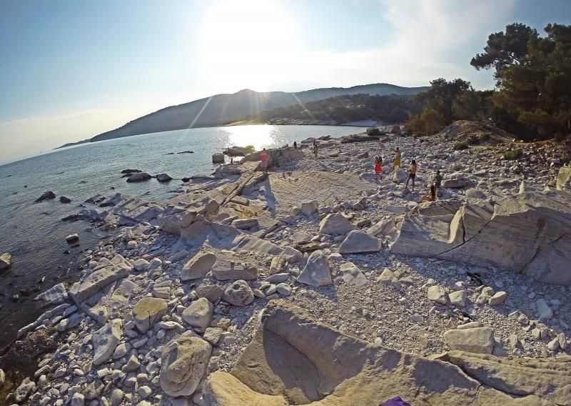 Cumartesi sabah erkenden kalkıp yine yola koyuluyoruz. İlk istikamet Marble Beach. Thassos yazdığınızda ilk karşınıza çıkacak yerlerden biri. Saliara bölgesinde bulunan büyük mermer ocağının yakınında olduğu için Marble Beach adını almış ve etkilerini de bembeyaz taşlarından anlayabiliyorsunuz.