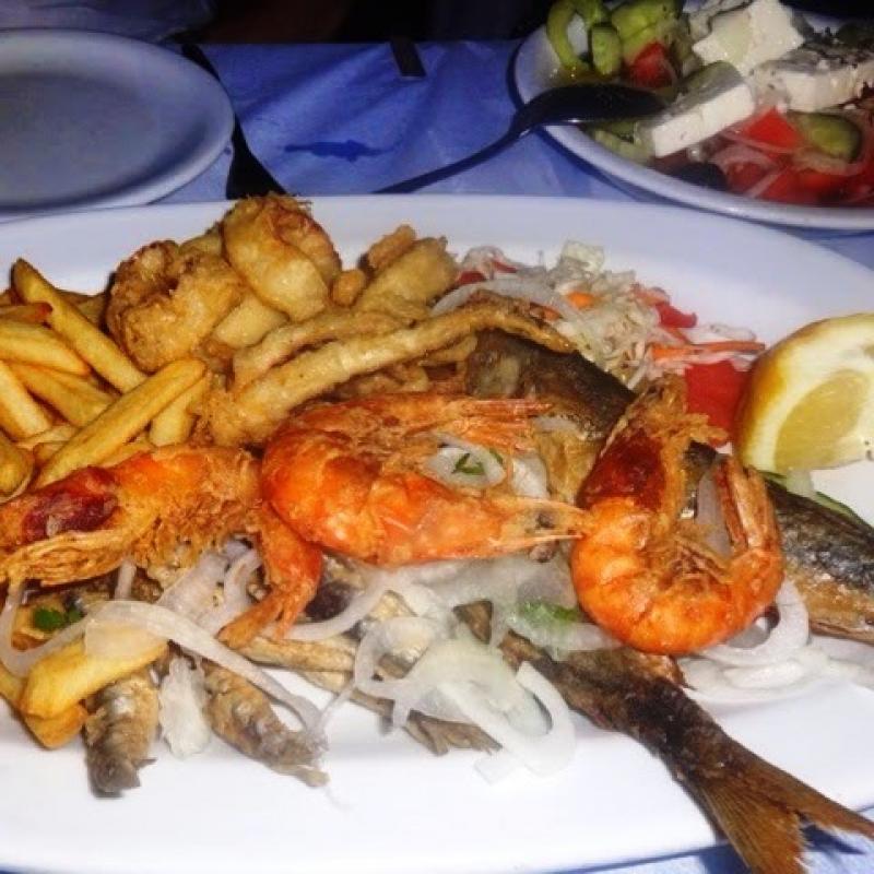 Öğlen et yemiştik; akşam için deniz ürünleri iyi gider diyor ve balık tezgâhı olan bir tavernayı, Taverna Poseidon'u seçiyoruz. Gerçi Yunanistan'da genelde tüm tavernalarda deniz ürünleri ve et bir arada. Türkiye'de olsa ikisini de satan ikisini de güzel yapamaz der girmem ama burada öyle değil. 8 kişi için iki karışık deniz ürünleri tabağı, iki kalamar,  iki Grek salata ve iki uzo söyleyip güzel bir ziyafet çekiyoruz (hesap: 57 €). Kuzular yorgun; caz yapıyorlar, geceyi erken bitiriyoruz...