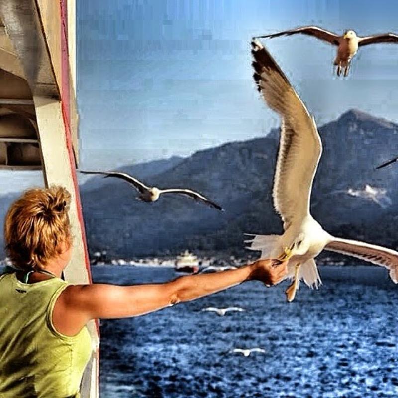 Dönüş feribotuna binmeden önce Thassos merkezde Stratos'un yerine uğruyor son bir ziyafet çekiyoruz. Stratos'un bize hediye ettiği uzo'ya şaşırıyor, teşekkür edip vedalaşıyoruz. Hiç sıra beklemeden feribota biniyor ve martıları besleyerek Keramoti'ye ulaşıyoruz...