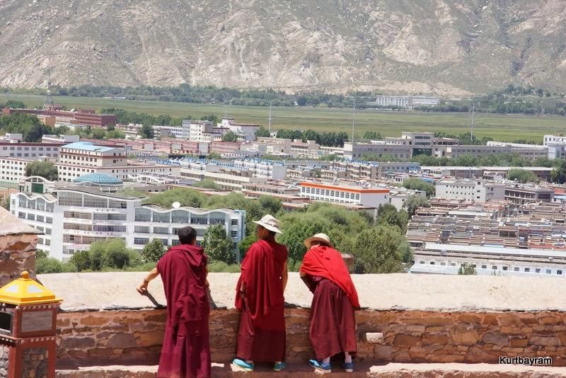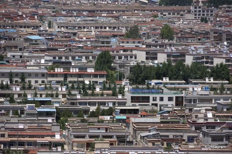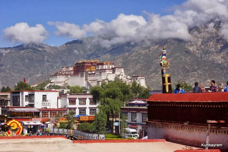 Binayı verilen zaman içinde gezip en üstteki bekleme terasına çıktığımda Lhasa'nın daha önce tam göremediğim esas yüzüyle karşılaştım. Lhasa şehrinin hükümet emriyle geliştirilen bölümleri tüm çıplaklıkları ve çirkinlikleriyle gözüküyor. Potala ile ne kadar tezatlar…