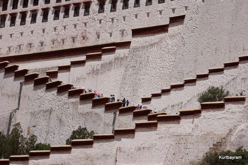 Sarayı gezmek için o kadar çok istekli var ki (ee Çin'in nüfusu 1,3 milyar, % 1 gelmek istese hesabı siz yapın) binanın zarar görmesini engellemek için ziyaretçi sayısını günde 2300 ile sınırlamak zorunda kalmışlar. Bir de giriş biletini korkunç pahalı hale getirmişler; tam 210 Türk Lirası. Üstelik Çinliler de aynı fiyatı ödüyor, yani maksat gelenleri caydırmak. Bu fiyatı başka yerde dünyada ödemezdim, ama Lhasa'ya gelmesi dert (malum izin belgesi almam uzun sürdü) gezmesi dert (rehber tutmadan şehirde hiçbir yeri gezmene izin vermiyorlar) bari bunu göreyim dedim. Ama cebim acıdı doğrusu.