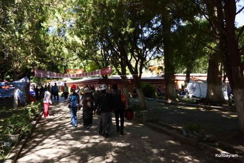 Öğlene doğru Lhasalılar, yavaş yavaş yoğurt şenliği kutlamaları için gelmeye başlıyorlar. Yanlarında yoğurttan çok, bira getiriyorlar ama malum şenlik tabii…