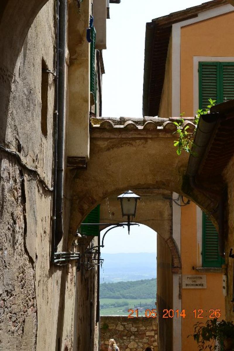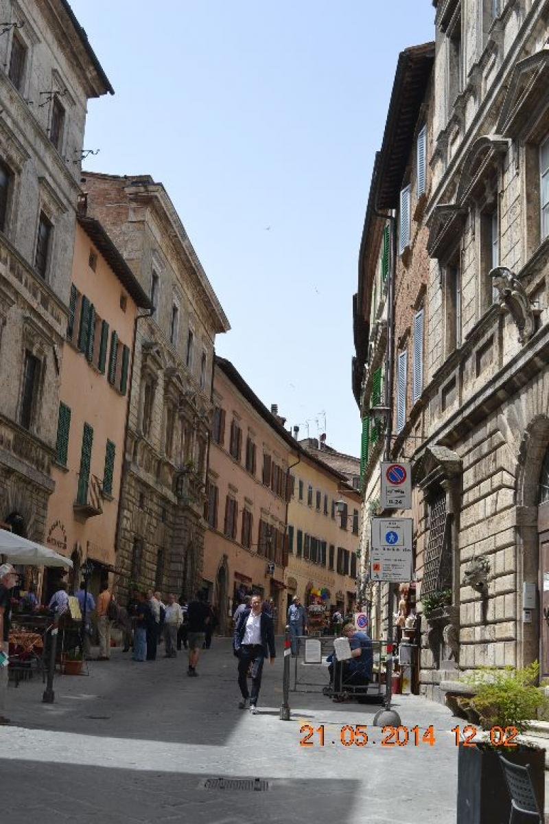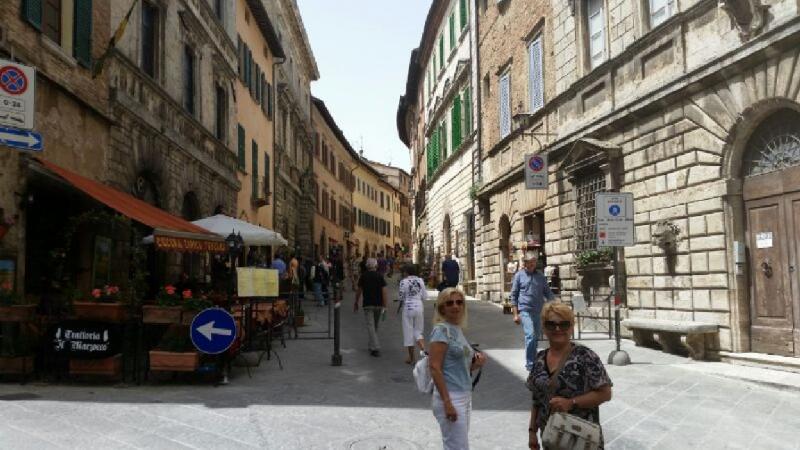 Pienza'da kalınmalı diye düşünüyoruz ama Toscana’da gezdiğimiz her şehirde burada kalınmalı diye düşünüp burada en az 1 ay “burası çok güzel kalalım, çok sevimli 1 gün daha kalalım” şeklinde gezilebilir, ama dünyada daha o kadar çok görülmeye değer ve gezilecek yer var ki… Gezmek görmek çok güzel, biz de Val d’Orcia’nın inanılmaz yeşilleri arasında ilerliyoruz, birden yeşillerin arasında adeta saklanmış bir şehir görüntümüze giriyor ve Montepulciano'ya yaklaştığımızı anlıyoruz. Tarihi Montepulciano, tüm Toscana kentleri gibi yüksek bir tepe üzerine kurulmuş. Yine bir şehir kapısından girerken şık Rönesans binalar, tarihi kiliselerden önce birer kadeh şarapla bir dükkân sahibi bizi karşılıyor; ünlü Vino Nobile di Montepulciano ve Rosso di Montepulciano ve yanında da tazecik ekmeklere sürülmüş çeşitli soslar sürülmüş kanepeler… Bu ikramları bu bölgede çoğu dükkân yapıyor aslında, bizim esnafımızda böyle ikramcı ve misafirperverdir doğrusu. Şaraplar gerçekten çok güzel, soslar harika, dönüşte almak üzere teşekkür ederek şehri gezmeye başlıyoruz. Dik bir yokuştan çıkarken yine çiçekler içindeki tarihi, harika toprak renkleri ile binalar ve mimariler, heykeller, dükkânlar tüm şehirler gibi bizi büyülüyor. Dar sokaklardan birine girince tıpkı Pienza’daki gibi nefes kesen bir Val d’Orcia manzarası karşımıza çıkıveriyor. Bu güzel şehrin ünlü “pici” makarnasını denemek için öğlen yemeğimizi burada yiyerek ve bu ünlü makarnayı tatmaya karar veriyoruz. Tavsiye istediğimiz bir dükkânı sahibinin tarifiyle “Trattoria di Cagnano”yu kolayca buluyoruz. Odun fırınını görünce doğru yere geldiğimizi anlıyoruz; pici, odun fırınında pizza, buz gibi Moltepulciano şarabı değmeyin keyfimize… Ama Umbria bölgesinin başkenti Perugia'ya akşam olmadan varmak istiyoruz. Otoyol yerine yan yollardan ilerlerken yolumuz üzerinde bulunan Lago Gölü kenarında bir kahve molası için duruyoruz. Üzerinde adacıklar bulunan ve yolcu vapurları işleyen Lago Trasimeno büyük bir göl. Plajları, yelkenleri, kafeleri ile güzel bir mola yeri ama yolcu yolunda gerek…