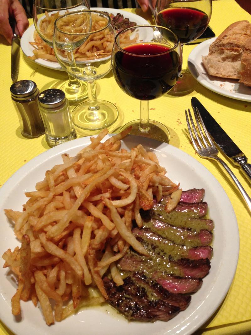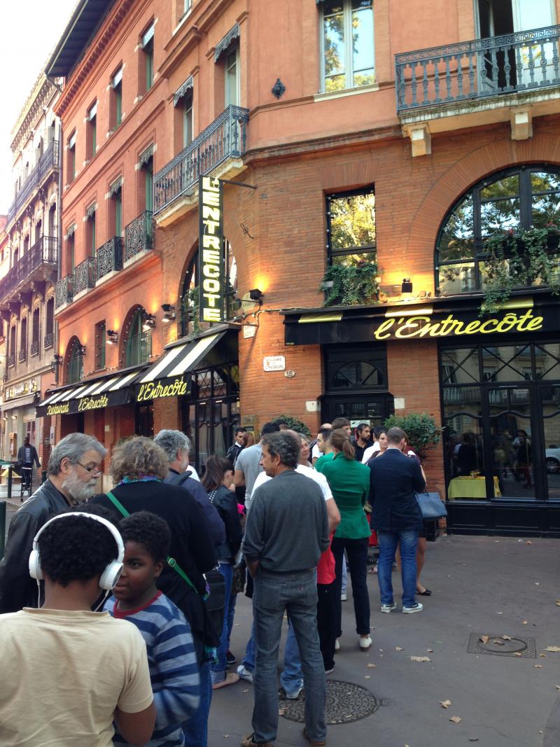 L'entrecote: Yemeden gelmemeli. Paris'teki Relais de l'Entrecote restoranlarını Toulouse şubesi ve 3'te biri fiyatına. Yalnız bilmekte fayda var: Burası 19.15'te açılıyor ve 18.30'dan itibaren insanlar kuyruğa giriyorlar. Mutlaka 18.45 gibi sıraya girin; yoksa insanların yiyip kalkmasını beklersiniz. Burada menü yok sadece Cafe de Paris soslu et ve patates kızarması geliyor. Öncesinde de herkese birer salata tabağı. Sadece şarap menüsü var. Kişibaşı 19 Euro ama galiba içtiğiniz şaraba göre değişiyor.