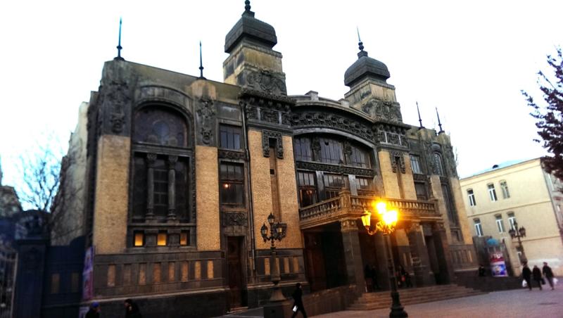 Bu binaya her baktığımda Bakü’de olduğuma defalarca seviniyorum. Targovi’de güzel bir ara sokakta güzelliğini besler gibi duruyor. Azerbaycan’nın en önemli insanları mutlaka burada bulunmuşlar. Hele ki bir avizesi var; arkadaş sen o tarihte nasıl yerleştin o avizeyi… Ama içeriye girdiğinde içler acısı bakımsızlıkta.