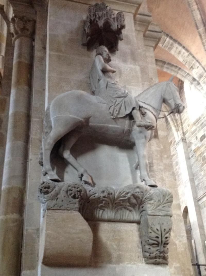Katedralin en tanınmış sanat eseri, 1235’te bilinmeyen bir usta tarafından yapılan ve onurun timsalini betimleyen at üstünde bir süvari heykeli. Süvarinin kimliği bilinmiyor, ancak II. Heinrich’in kız kardeşi Gisela ile evli olan Macar kralı Stephan olduğu tahmin edilmekte. Heykelin kaidesi Kudüs şehrini simgeliyormuş.