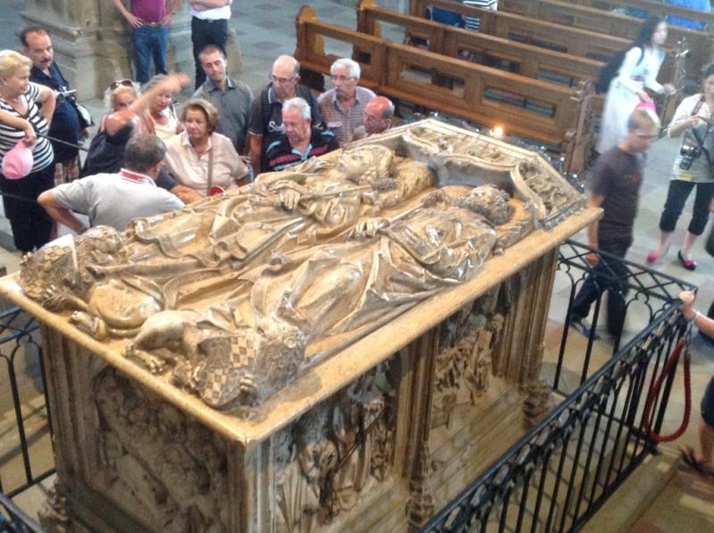 Katedralin içindeki en ilgi çekici bir diğer nokta da II. Heinrich ile eşi Kunigunde’nin mezarı. Bu mezar 1513’te yapılmış. Kabrin üst kısmında imparator ve eşinin kabartma heykelleri yatar pozisyonda yer alıyor. Kabrin yan taraflarında ise 5 ayrı bölümde kabartmalarla çiftin yaşamlarından kesitler betimlenmiş. Burada; Aziz Heinrich’in böbrek taşı hastalığının iyileşmesi tasviri, imparatorun ölümünden sonra ruhunun tartımı tasviri, imparatorun eşi Kunigunde’nin huzurunda ölümü tasviri, imparatoriçenin Stephan Kilisesi’nin inşasından hoşnutsuzluğunu belirten tasvir, imparatoriçenin saban demiri denemesi tasviri yer almakta. Katedral içinde en ilgi çeken nokta burası diyebilirim. Kabrin fotoğrafını çekmek için merdivenle yukarı çıkabilirsiniz.