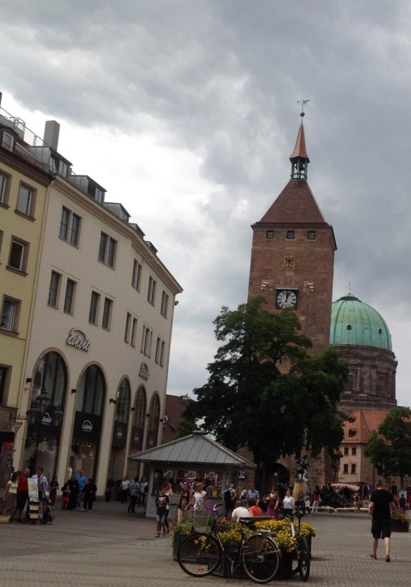 Albrecht Dürer Caddesi’nden Ortaçağ mimarisi ile yapılmış 4-5 katlı tipik Alman evleri arasından keyifli bir yürüyüşle oyuncak müzesi önünden ilerleyerek Max Brudge’den geçip 13. yüzyıl şehir surlarından günümüze kadar gelen Weisser Turm (Beyaz Kule)’e geliyoruz.