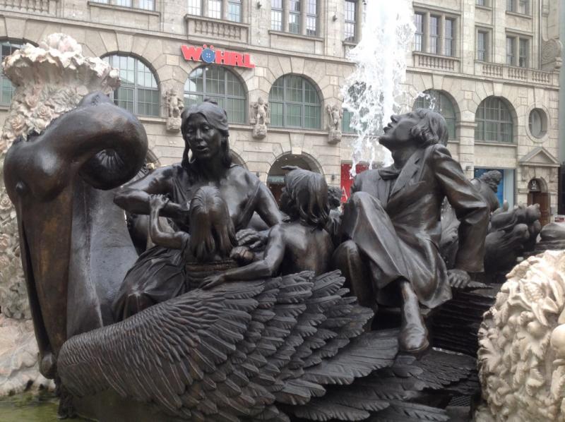 Köprü çıkışında Hauptmarkt’a gelirken Nuh’un Gemisi’ni anımsatan bir gemi içinde insan ve hayvanlardan oluşan bronz bir heykel görüyoruz.