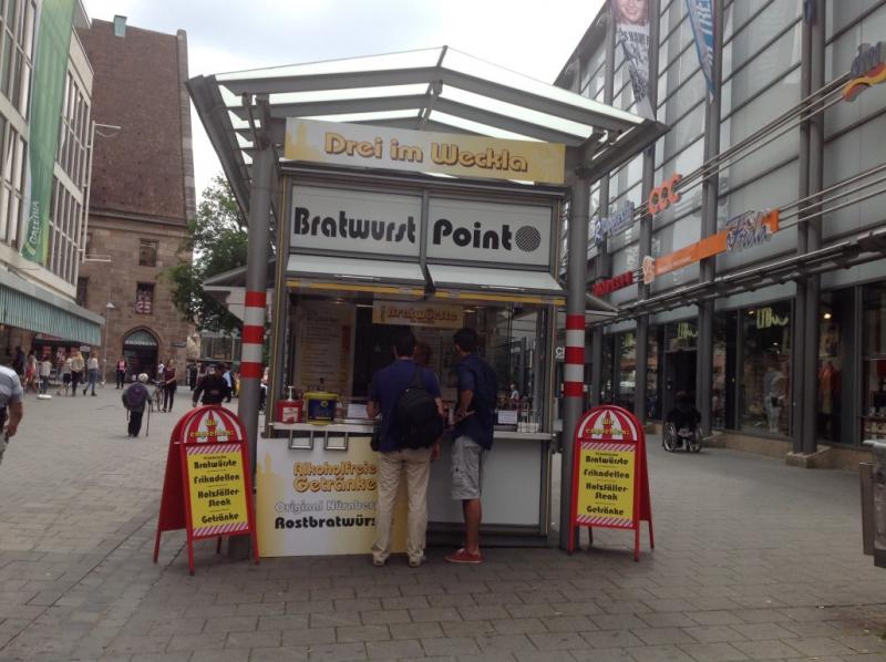 Pek çok mağazanın bulunduğu Königstrasse boyunca ilerleyerek Nürnberg’in spesiyalitesi Bratwurst’u denemek istedik. İyi ki de denedik, çok lezzetliydi. Küçük bir sandviç içine parmak kalınlığında 3 adet domuz sosisi konularak servis ediliyor. Domuz eti yemeyenler, sığır türünden yapılmış olan “ochsenmaul”u deneyebilir.