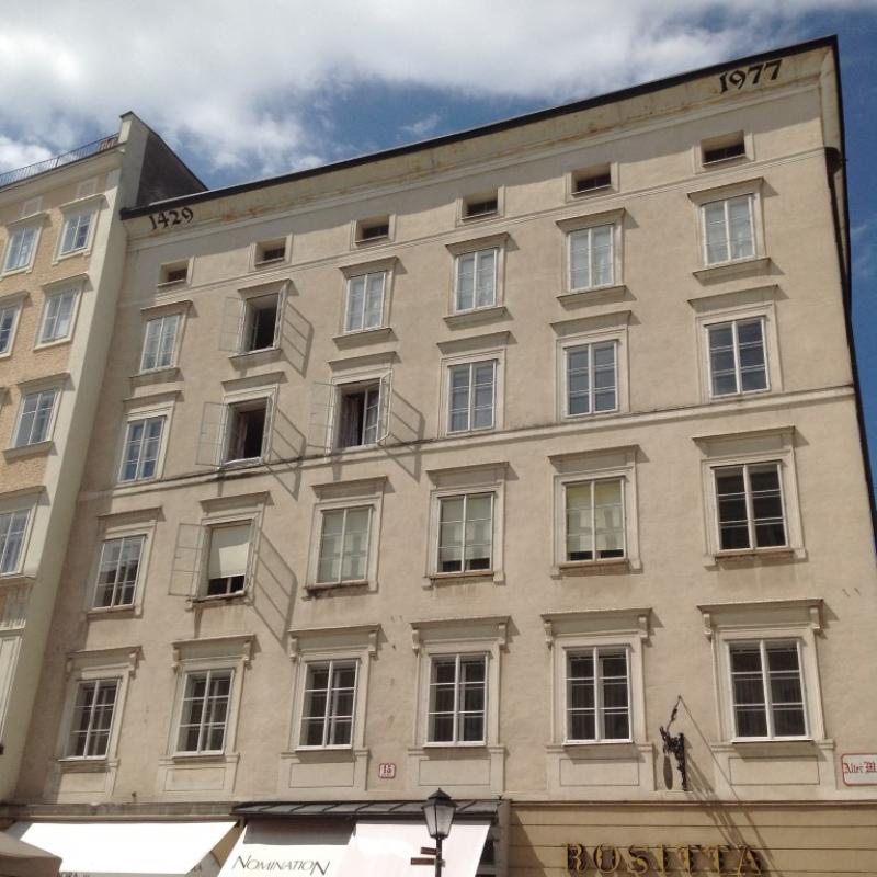 Mozart, Avusturya’da 1756-1791 yılları arasında toplamda 16 evde yaşamış ve 35 yıl içinde 661 adet eser bırakmış. Müzik dehası Mozart, 5 yaşında keşfedilmiş ve orkestraya dâhil edilmiş. Biz de Mozart’ın doğduğu eve geldik, ancak müzeye çevrilmiş bu eve giremedik. Zamanımız kısıtlı olduğundan evi dışarıdan fotoğraflayarak eski şehirde yürümeye devam ettik.