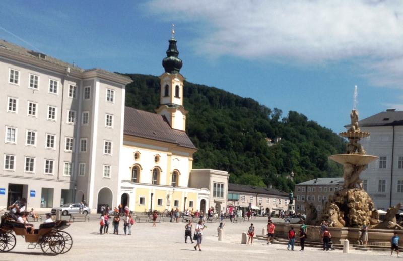 Bu keyifli mağazalar arasından yürüyerek Salzburg’un en büyük meydanı olan Dom Meydanı (Rezidans Meydanı)’na geliyoruz. Bu meydanda; Rezidans, 12. yüzyıla tarihlenen Fransiskan Kilisesi ve Dom Katedrali (Salzburg Katedrali) yer alıyor.