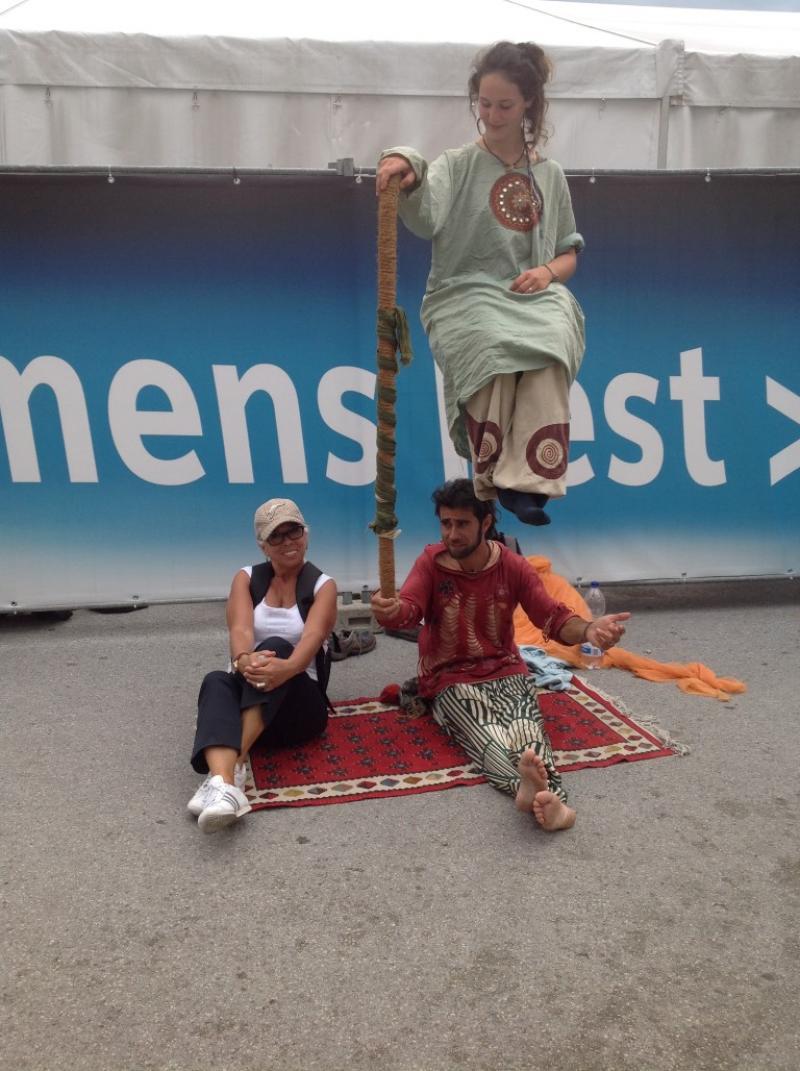 Şehirde dolaşırken yer yer sokak sanatçılarının gösterilerine rastlıyoruz. Bunlardan bir sopaya tutunmuş boşlukta duran bayan çok ilgimizi çekti ve fotoğrafladık.