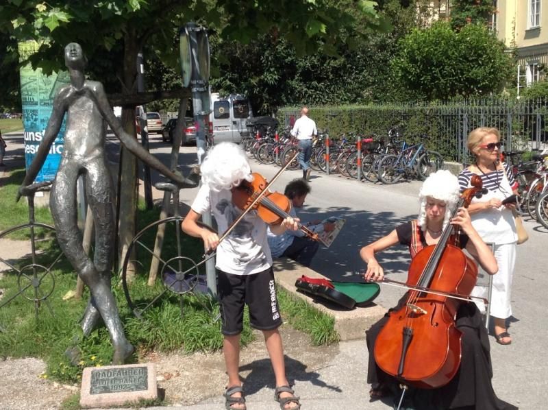 Bahçelerden sonra kilitli köprüye doğru giderken yer yer sokak müzisyenleri size Mozart dinletiyor.