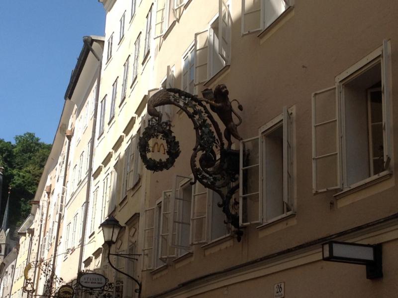 Eski şehirde dolaşırken en çok ilgimizi çeken şey mağaza tabelaları oldu. Dükkân veya mağaza hangi işi yapıyorsa ferforje tabela o işi anlatacak biçimde formlandırılmış. Bu tabelaların en ilginci ise tüm dünyada tabelası aynı olan McDonalds’ın tabelasıydı. Mecburen o da kendi dizaynını buraya uydurmuş.