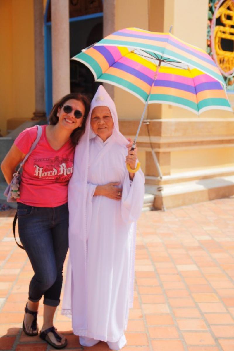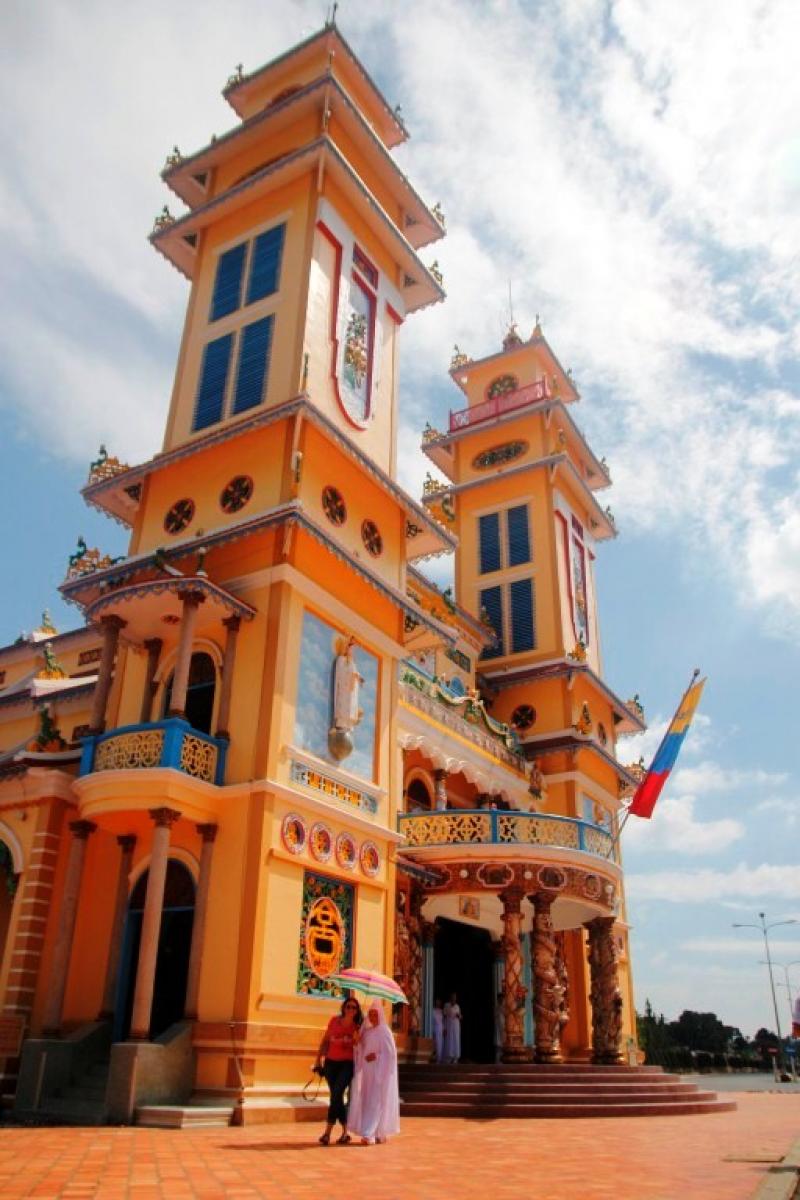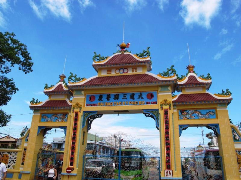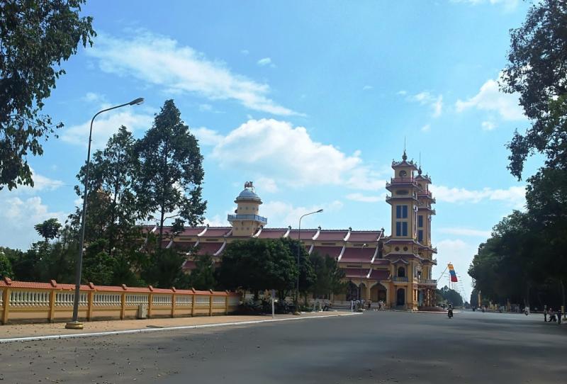 Vietnam’ın Vatikan’ı olarak düşünebileceğimiz, Kaodaizm dininin merkezi Tay Ninh’e doğru yola çıktığımızda bir yandan üzgün, bir yandan da, geçtiğimiz yüzyılın başlarında ortaya çıkmış bir inancın, doğduğu ve geliştiği yeri göreceğimiz için heyecanlıydık. Günde üç kez yapılan ayinlerden, öğle ayinine yetişmek için de acele etmek zorundaydık. Yolun iki yanındaki tarla ve çiftliklerin arasından ilerleyerek, Amerikan işgali sırasında helikopter üssü olarak kullanılan Tay Ninh’e vardık. Tapınağın ana bahçe kapısında klimalı aracımızdan iner inmez bizi oldukça sıcak ve nemli bir hava karşıladı.