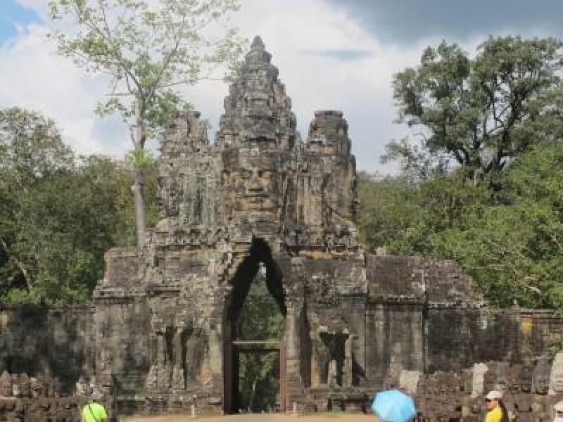 Giriş kapısının önünde dizilmiş Tanrı heykellerinin şehri asırlardır kötü ruhlardan koruduğuna inanılıyor. Buradaki en önemli yapı, kuleleri devasa Buda yüzleriyle kaplı olan Bayon Tapınağı. Üç katlı lotus çiçeği goncası şeklinde yapılmış kule ve iki yüzün üstünde gülümseyen, aydınlanmış Buda yüzlerinin enerjisi ile buraya gelen her kişinin aradığı huzuru bulabileceği söyleniyor.