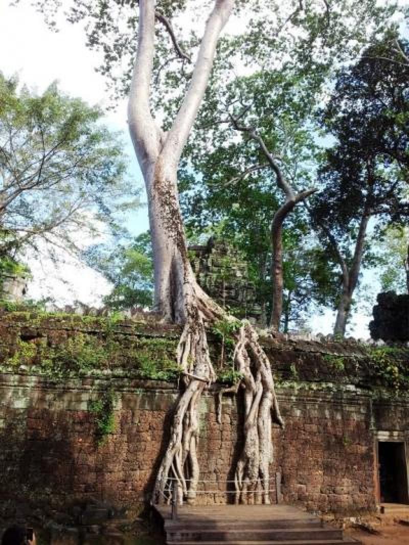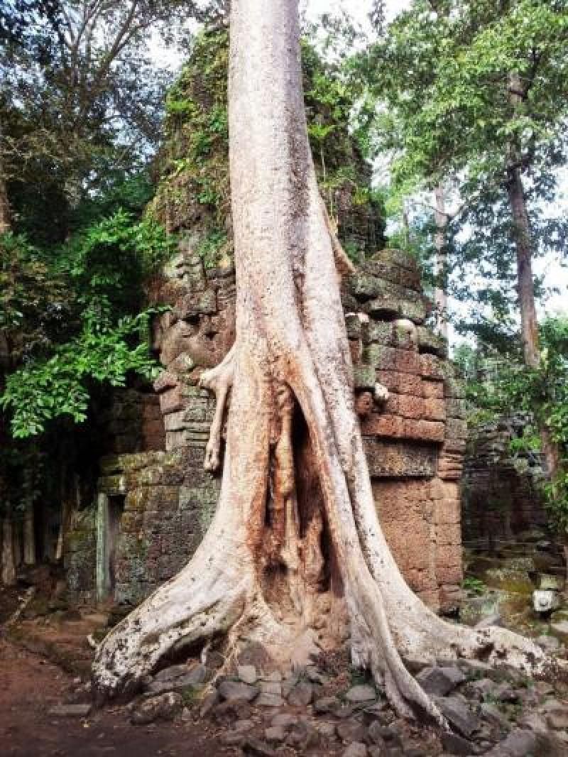 Kralın annesi adına yaptırdığı bu tapınak belki de Angkor’daki tapınaklar içinde en ilginç ve en esrarengiz olanı. Khmer Krallığı’nın en ihtişamlı dönemlerinde komşu ülkelerden gelen tehditler sonucu terk edilmiş ve bölge ormanın içinde kaybolmuş. Ahtapot köklü banyan ağaçları, kökleri ile tüm tapınak taşlarını içine hapsetmiş ve yüzyıllar boyu koruyarak günümüze kadar ulaşmasını sağlamış. Hindu kültüründe banyan ağacına “dilek yerine getiren kutsal ağaç” anlamında “kalpaviksha” denirmiş. Yapıların en ilginç yönü içinden çıkan ve onu adeta sarıp sarmalayan bu devasa ağaç kökleriyle bir bütün oluşturması.