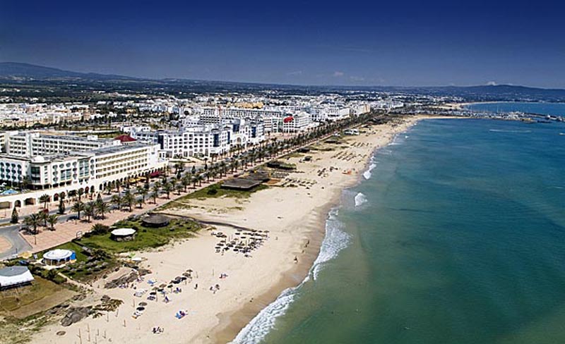 Hammamet, Tunus’un en eski turistik bölgesi. Çok sayıda otel ve tatil köyü bulunuyor bu bölgede. Yeşil alanı çok bozmamak için çok bakımlı bahçeler oluşturmuşlar. Otel binası ne kadar alan kaplıyorsa o kadar da bahçesi olması gerekiyor. Bazı otellerin mimarileri bir hayli dikkat çekici.